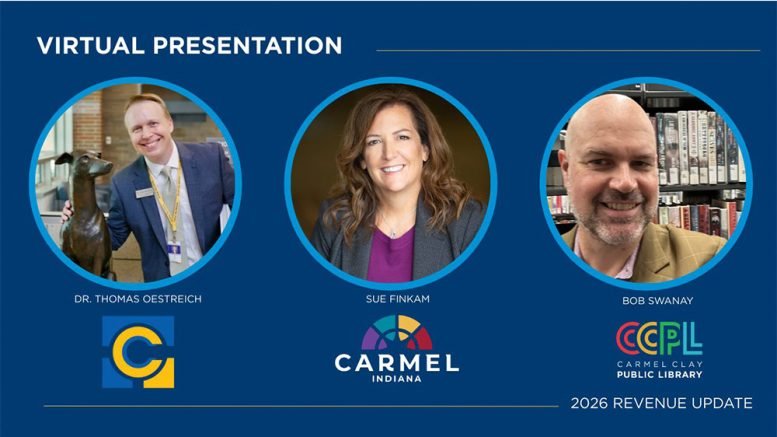 The City of Carmel, Carmel Clay Schools (CCS), and Carmel Clay Public Library (CCPL) will hold a 60-minute virtual presentation about the expected revenue impacts in 2026 at 6 p.m. Thursday, Aug. 28.