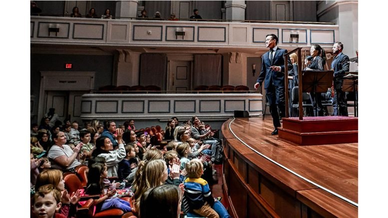 The immersive concerts featured interactive elements, musical storytelling, and performances of beloved classics and contemporary works, tailored to align with school curriculum standards. Conductor Chen discussed each section of the orchestra including percussion, strings, harp, brass and woodwinds. He had the orchestra demonstrate their instruments as he talked about each section and showed how music tells stories, sets moods, and brings people together.