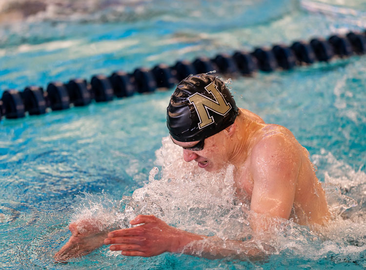 Noblesville’s Joshua Naas advanced to state in the individual medley and breaststroke and two Millers relays. (Julie Brown)