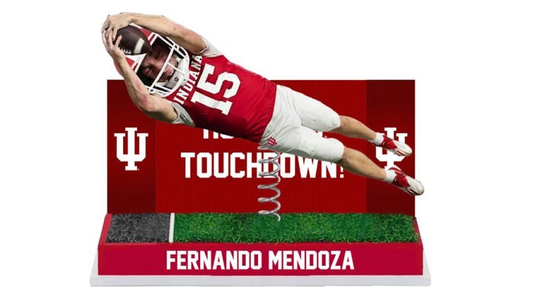 “Fernando Mendoza helped cap the most memorable season in the history of Indiana Hoosiers football with one of the most memorable plays in program history,” National Bobblehead Hall of Fame and Museum Co-Founder and CEO Phil Sklar said. “Fernando’s gutsy touchdown run in the fourth quarter epitomized the entire season for the undefeated Hoosiers. This bobblehead is sure to be a keepsake for fans of the Indiana Hoosiers and a collectible that is handed down to future generations of Hoosiers!”