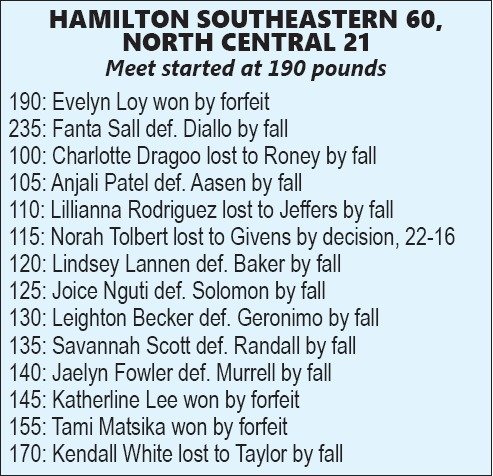 FISHERS – The Hamilton Southeastern girls wrestling team won its first dual match of the season Wednesday, beating North Central 60-21 in a home meet.