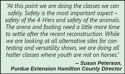 “We’re just making sure that we keep our 4-H’ers and their horses safe with our footing,” said Kathleen Bohde, Hamilton County 4-H Youth Development Extension Educator. “Making sure that the footing that we have in our horse show arena is to the best of our ability. It was deemed that we need to keep our level of speed on the horses to a walk trot.”