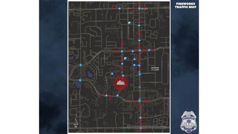 The CarmelFest fireworks show draws thousands of spectators. The fireworks show also signifies the end of CarmelFest. Most spectators will plan to leave immediately after the show. This mass departure slows traffic. Officers will be diligently working to manage traffic flow to keep everyone moving. The traffic plan, pictured here, is designed to move traffic away from CarmelFest. Inbound traffic will not be allowed until outbound CarmelFest traffic has cleared. Plan ahead and choose parking according to your post-fireworks destination.