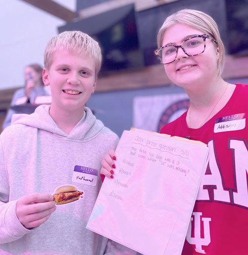 Nathaniel Leonard knew the missing “H” in the original 4-H pledge. He was presented with a Chick-fil-A couple by fellow 4-H’er Addison Mann. (Photo provided by Husky 4-H’ers)