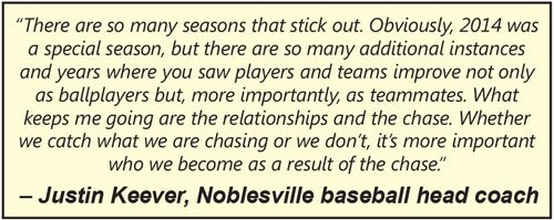 “I’m humbled and blessed that I have been able to coach great players, at a great place, with great people, for great people, for a long time,” said 22nd-year Noblesville head coach Justin Keever.