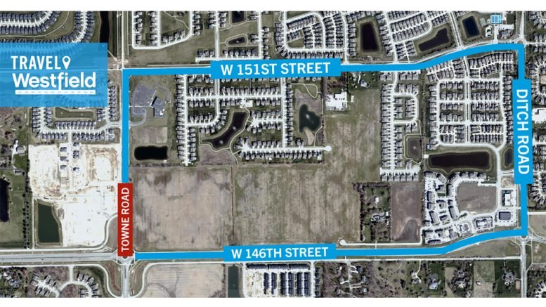 Towne Road from 146th Street to Towne Run Road will be closed to construct a roundabout tying into Old 146th Street. Please detour utilizing 146th Street to Ditch Road to 151st Street. This closure will tentatively last 60 days. All dates and timelines are subject to change due to weather, utilities, etc.