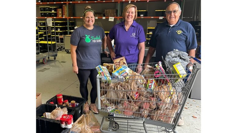 Lions Julia Kozicki (center) and Gene Beck (right) delivering donations to Fueled for School in 2023. (Photo provided by Lisa Dick, Noblesville Lions Club)