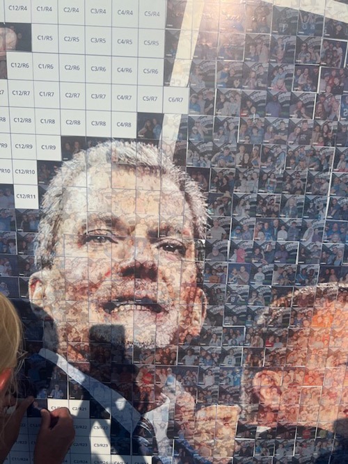 This photo collage of the late Jim Irsay (which is made up of people who volunteered at this year’s Colts Camp) will be placed at Lucas Oil Stadium for his Ring of Honor induction on Sept. 7 when the Colts play the Miami Dolphins. (Photo provided)