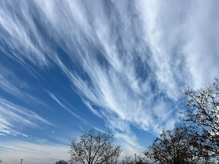 I looked up and saw a breathtaking sky. My jaw dropped. I paused that cold morning to admire the long wispy clouds that streaked across a background of bright blue.