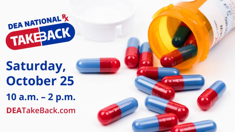 On Saturday, Oct. 25, the Drug Enforcement Administration (DEA) is sponsoring its nationwide “Prescription Drug Take Back” initiative. The “Take Back” initiative seeks to prevent prescription drug abuse and theft through proper disposal of prescription drugs.