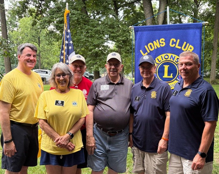 (From left) Noblesville Lions President Jeff Kozicki, Cheryl Helton, Steve Shaw, Joe Connerley, Walt Scheid, and John Einsfeld. (Photo provided by Noblesville Lions Club)