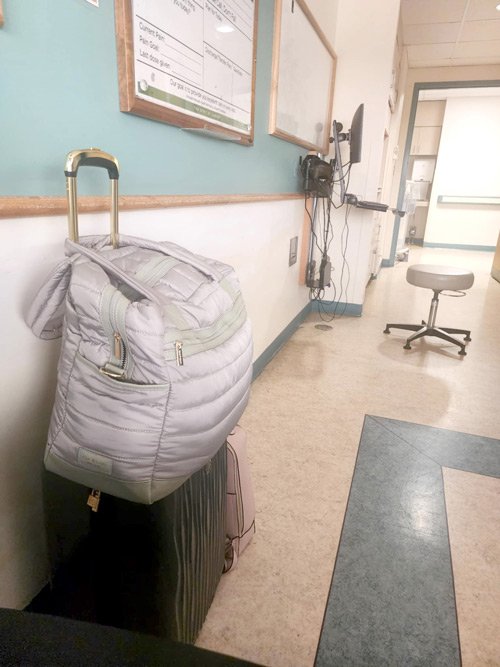 Her bags were stuffed for a several-week stay. She carried a heavy load in her luggage, but even more so in her mind and heart. Cancer does that.