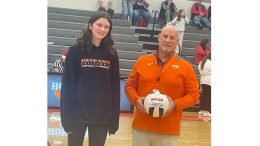 Hamilton Heights volleyball player Macie Smith was honored by the Huskies at their girls basketball game on Saturday, Dec. 20 for clearing 1,000 career digs during her senior season. Smith,…