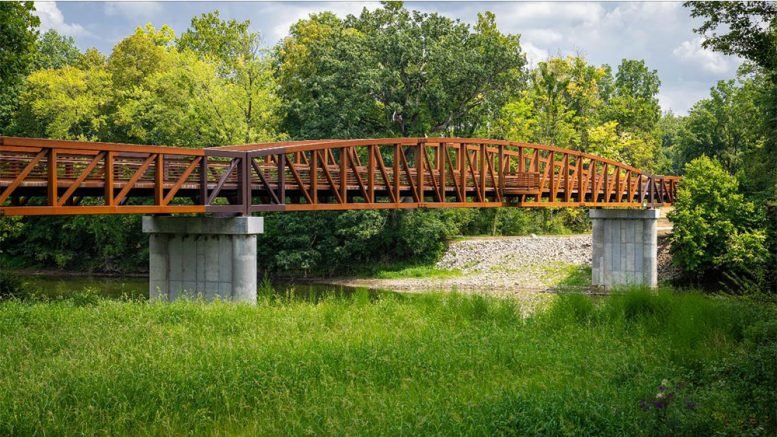 The new Bur Oak Bridge was a collaborative effort between Carmel Clay Parks & Recreation, Clay Township, Hamilton County, Delaware Township, and the City of Fishers. (Photo provided by Carmel Clay Parks & Recreation)
