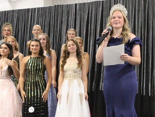 The 2024 4-H Queen, Cheyenne Boggs, speaks before the crowning of the 2025 4-H Queen. (Reporter photo by Richie Hall)