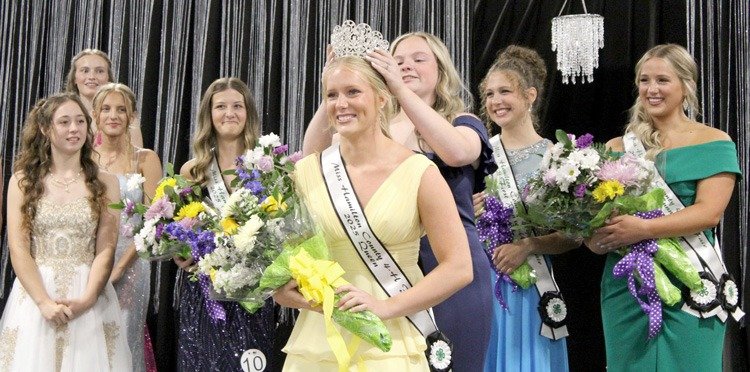 2024 4-H Queen Cheyenne Boggs crowns this year’s 4-H Queen, a very happy Sophia Hulen. (Reporter photo by Richie Hall)