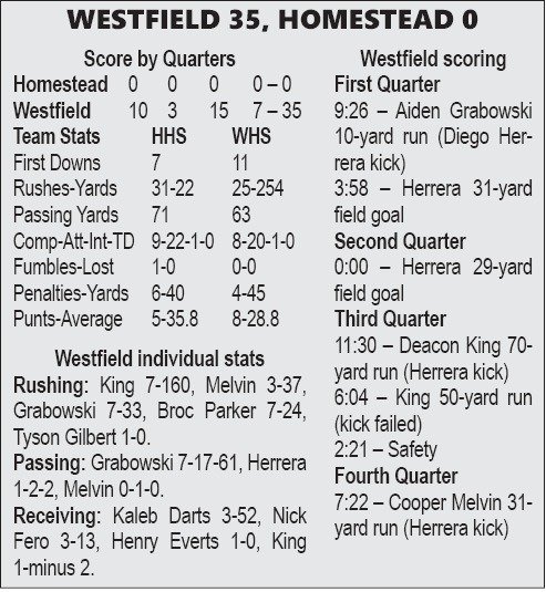 Westfield sailed to an opening-week victory on Friday, beating Homestead 35-0 at Riverview Health Stadium.