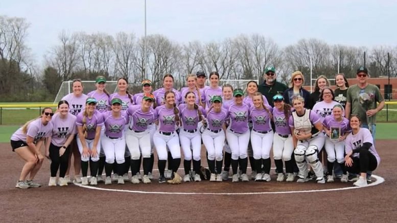 The Westfield High School Varsity Softball team combined purpose, gratitude, and strong play on April 2 during its Cancer Awareness Game at Monon Fields Complex, defeating Pendleton Heights High School 7-3.