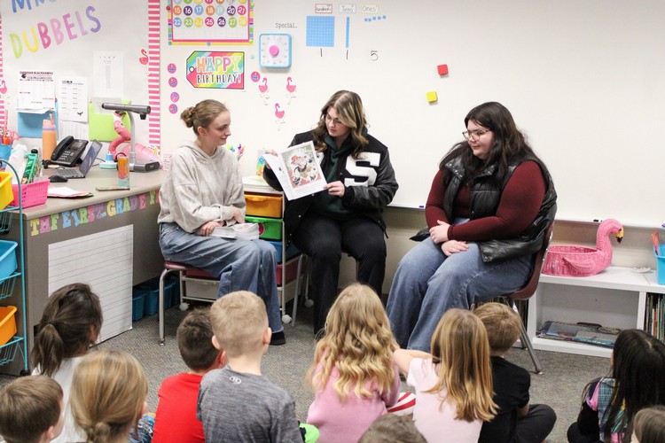 On Friday, Feb. 13, members of the Sheridan High School Student Council shared their love of reading and Valentine’s Day with first graders at Sheridan Elementary through “I Heart Reading.” These leading students showed off their pride for all things Sheridan as they read aloud to the young learners. SHS sophomores Addie McCardia, Grace Pratt, and Izzy Delgado said, “I Heart Reading is a good opportunity for everyone because it is always fun for the kids, but it also helps teach them that reading can be fun!”