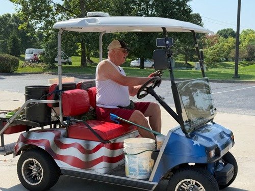 Schenher holds a special permit that allows him to drive his golf cart on city sidewalks in order to carry out his duty. (Photo provided by Stan Schenher)