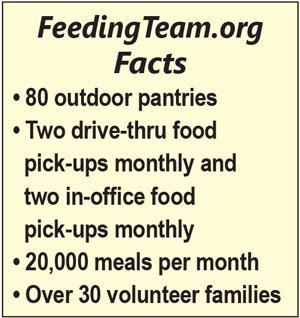 More than 44,000 people in Hamilton County struggle with food needs. FeedingTeam.org is a registered 501(c)(3) nonprofit that offers outdoor, no-questions-asked food pantries that are open 24/7, all year long. These pantries help families who may not qualify for other programs but still need a few meals to get by.