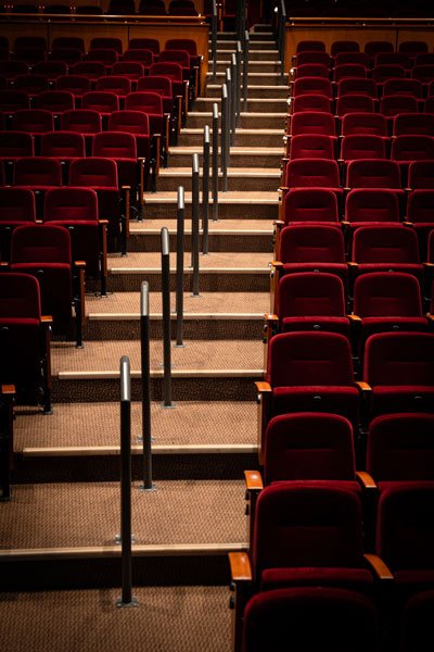 As for the handrails, the Tarkington’s stadium-style seating area has stairstep aisles at the center and sides where patrons sometimes stumble while coming and going, said Krista Layfield, Allied Solutions Center’s Front of House Manager. Now, continuing a series of accessibility upgrades on the campus, sleek steel handrails have been installed down the middle of each aisle to help people maintain their balance. REI Real Estate, which manages the James Building, collaborated on the project.
