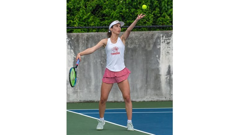 The host Panthers won with a score of 24 points. Fishers scored 10 points to place fifth and had the best individual finish with No. 1 singles Allie Briggs (pictured) finishing as runner-up in that flight. University tied for sixth with eight points and Hamilton Southeastern finished eight with four points.