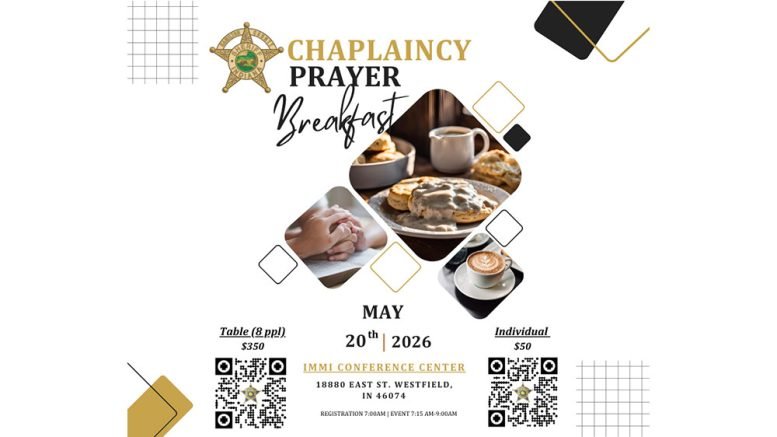 The Hamilton County Sheriff’s Office will hold its fifth annual Prayer Breakfast on Wednesday, May 20. The event will be held at the IMMI Conference Center, 18880 N. East St., Westfield.