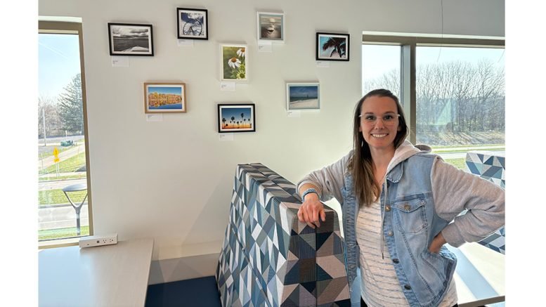 Artist Katie Setcoski with her works on display at the library. (Photo provided)
