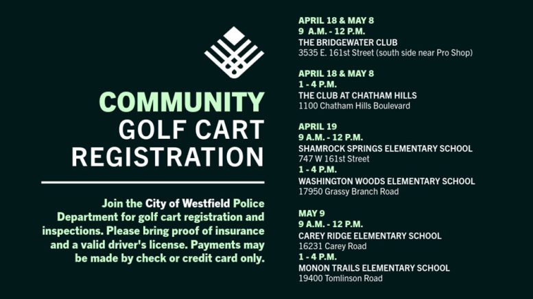 Additional details about golf cart requirements and registration can be found at westfieldin.gov/golfcarts.