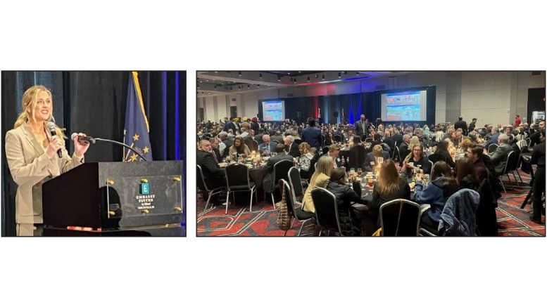 Even a (hopefully) last blast of winter weather and a day with white-out driving conditions could not keep Republicans away from the 2026 Hamilton County Republican Party Lincoln Day Dinner held at Embassy Suites, 13700 Conference Center Drive South, Noblesville, on March 16. A total of 712 seats were sold, many of whom came specifically to hear NCAA Swimmer & Women’s Sports Advocate Riley Gaines give the keynote address (above left). She spoke at length about her own experience with male-born trans athletes competing in women’s sports, a discussion which received two standing ovations.