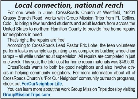 Ehrenberg is one of the many teens who has been repairing homes around the county this past week with CrossRoads Church at Westfield and Group Mission Projects.